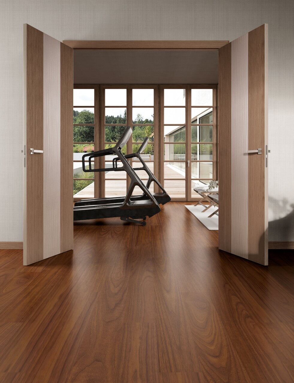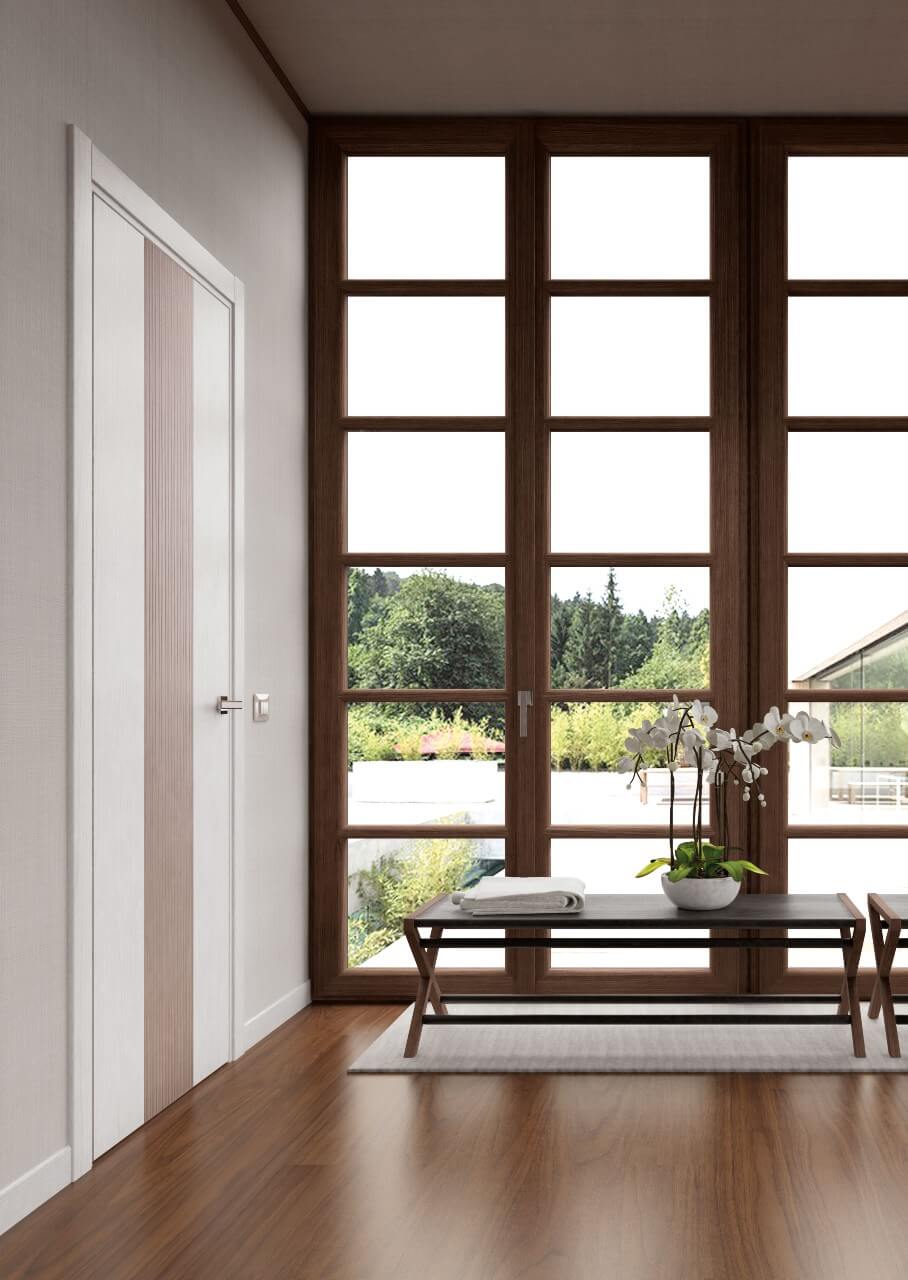 Современный тренд в области декоров отделочных материалов. Натуральный шпон брашированного ясеня покрывается цветной матовой эмалью. Такое сочетание позволяет наслаждаться структурой натуральной древесины. Покрытие эмалью делает покрытие двери насыщенным цветом и еще более благородным.
